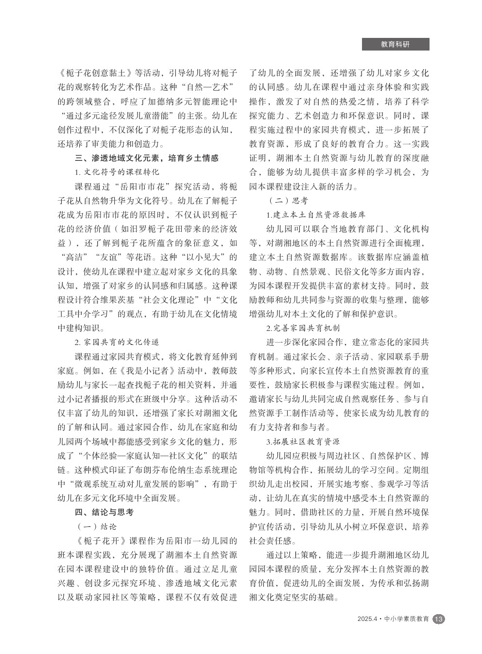 【2025年第4期】湖湘本土自然资源融入园本课程建设的策略——以课程《栀子花开》为例