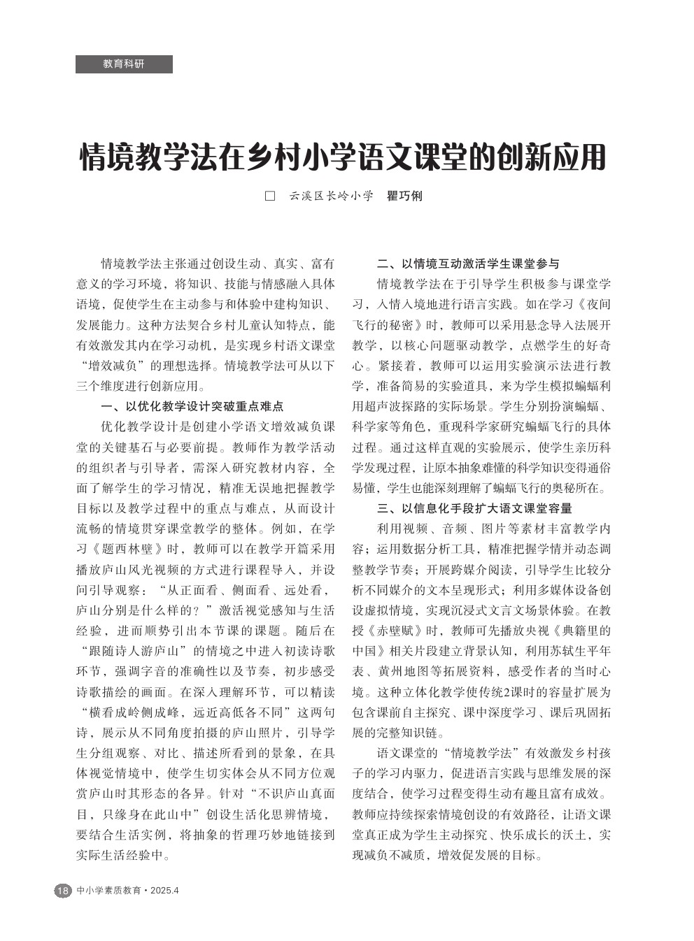 【2025年第4期】情境教学法在乡村小学语文课堂的创新应用