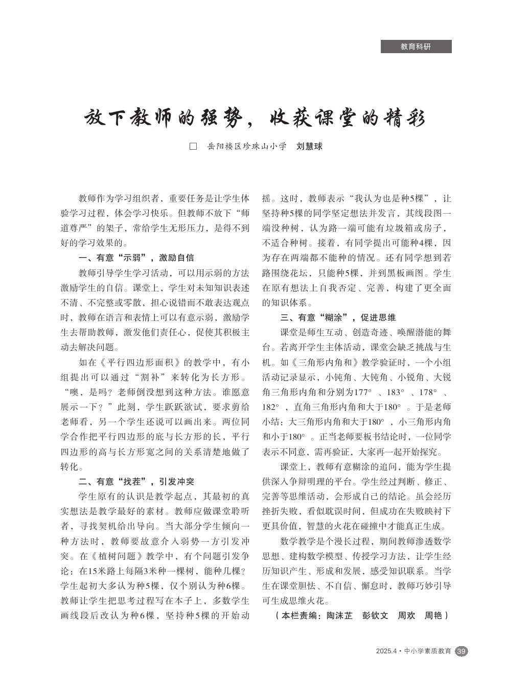 【2025年第4期】放下教师的强势,收获课堂的精彩
