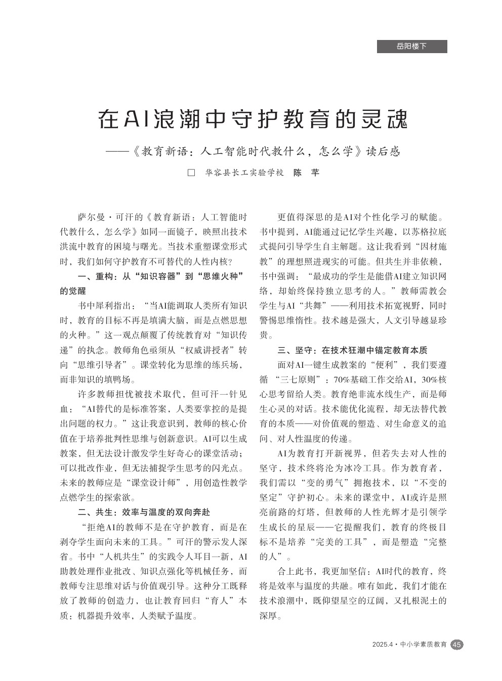 【2025年第4期】在AI浪潮中守护教育的灵魂——《教育新语:人工智能时代教什么,怎么学》读后感