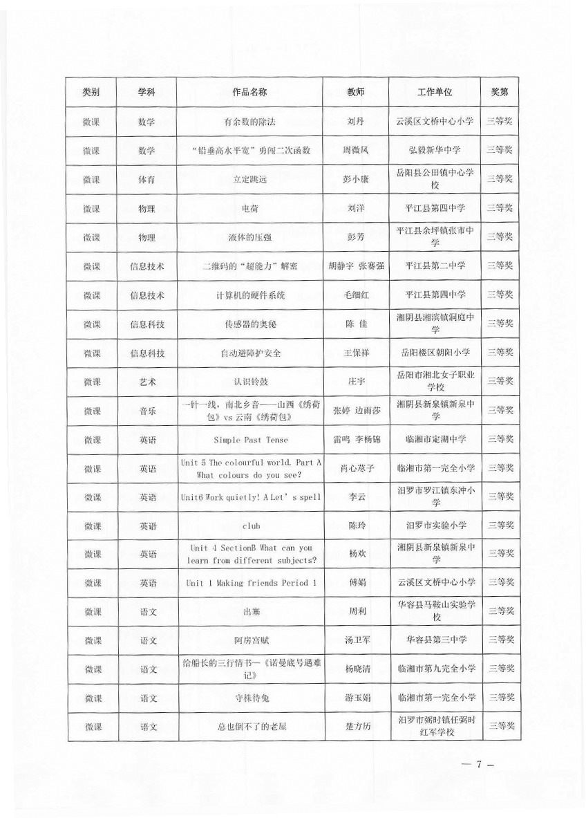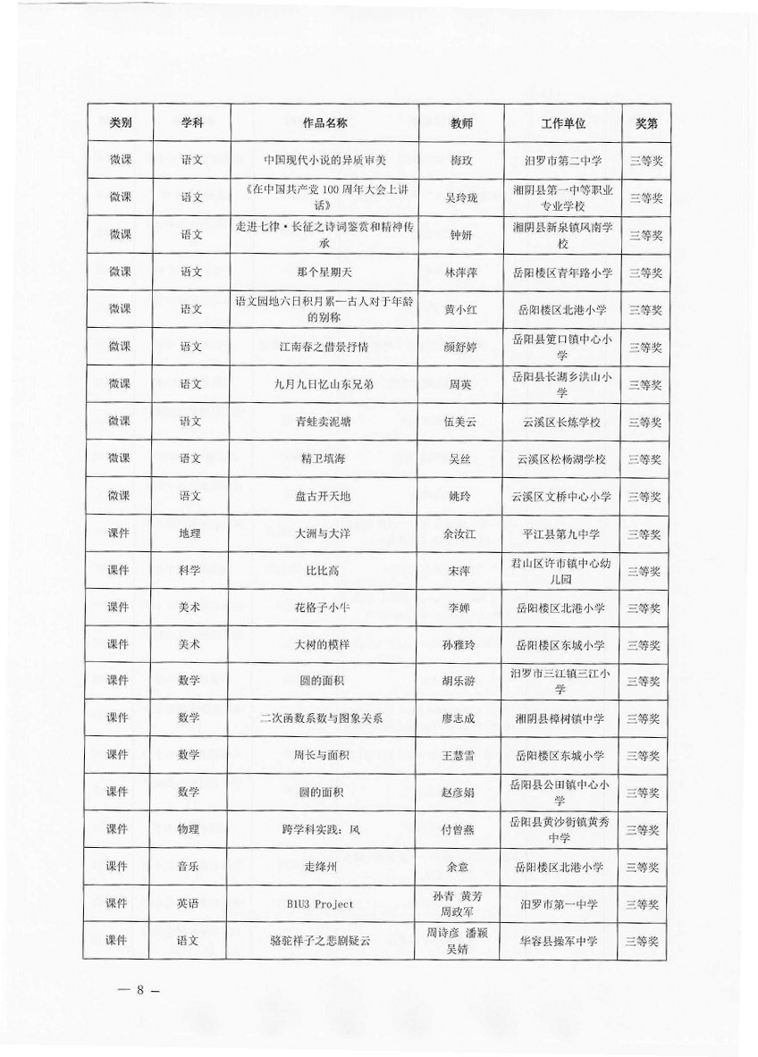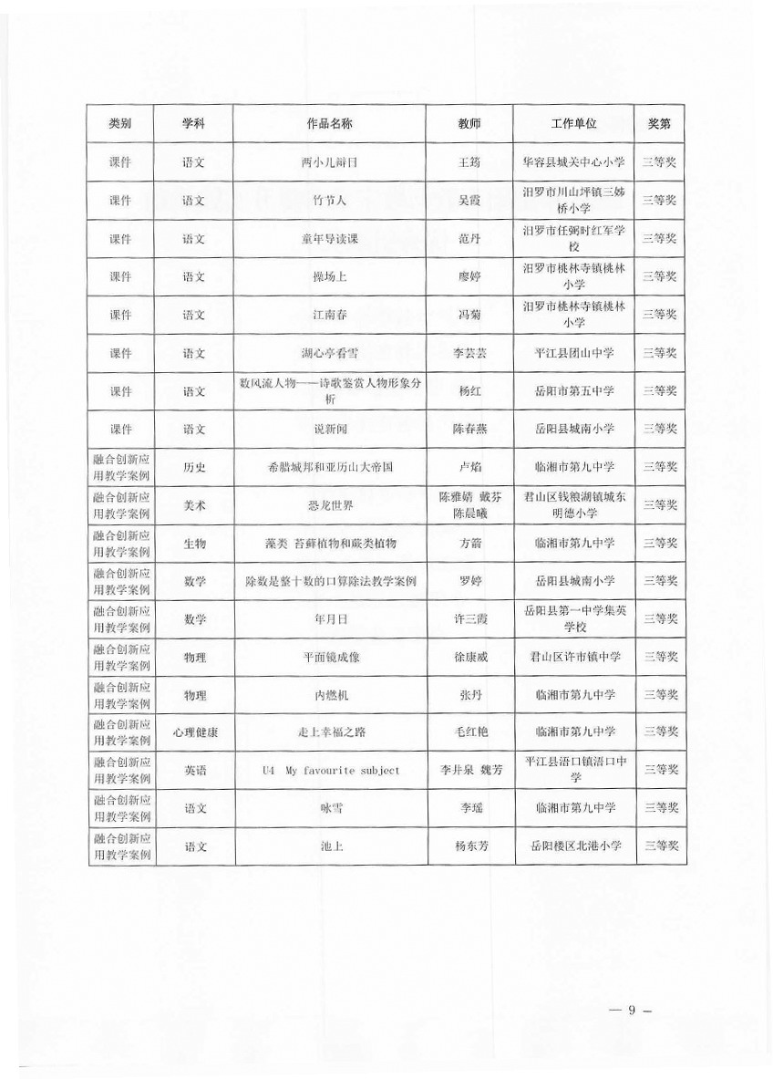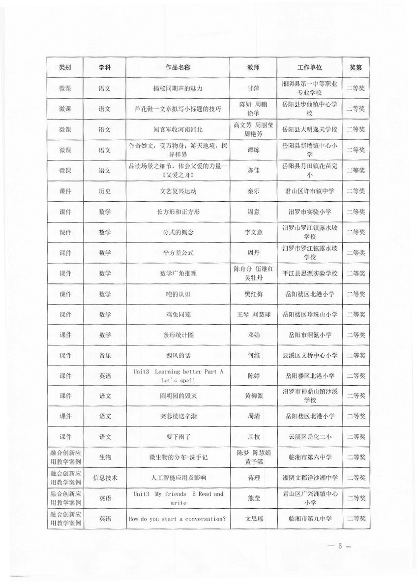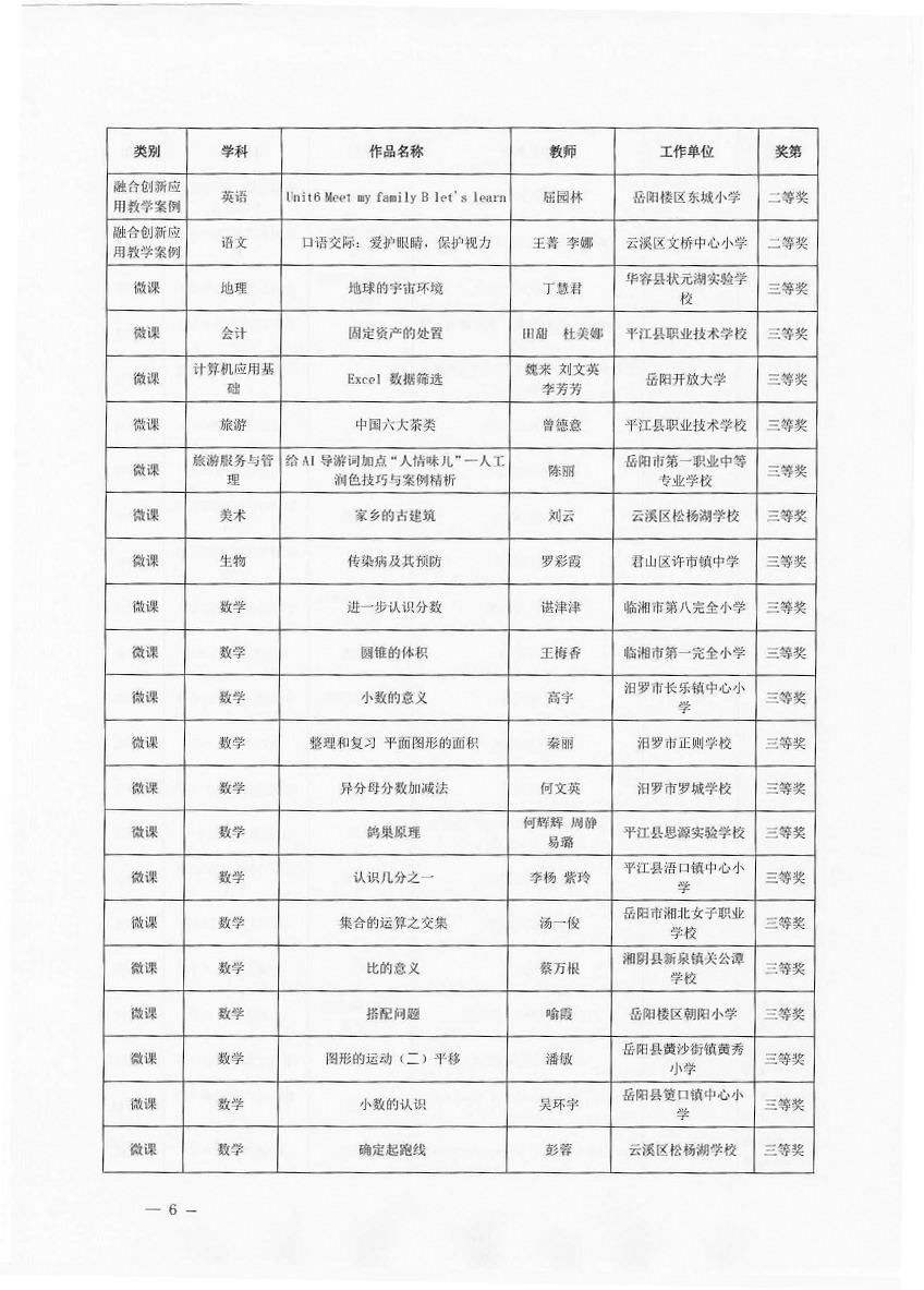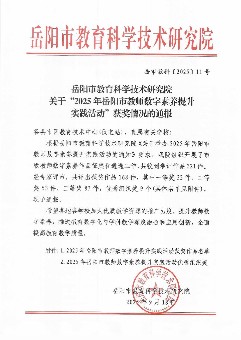 关于“2025年岳阳市教师数字素养提升实践活动”获奖情况的通报(岳市教科〔2025〕11号)