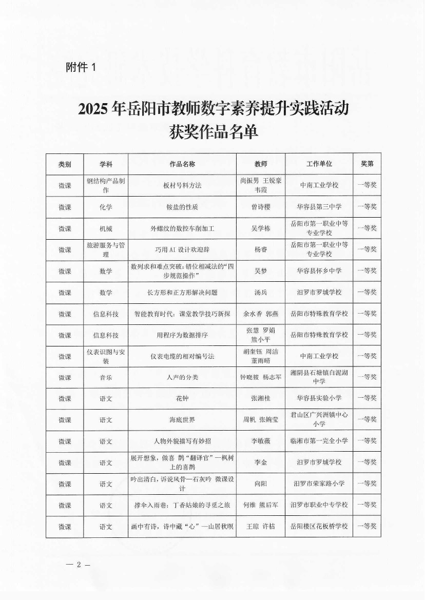 关于“2025年岳阳市教师数字素养提升实践活动”获奖情况的通报(岳市教科〔2025〕11号)_0001(1).pdf