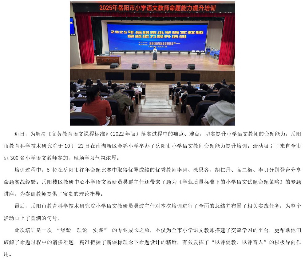 以评促教,赋能成长!岳阳市小学语文教师命题能力培训圆满落幕