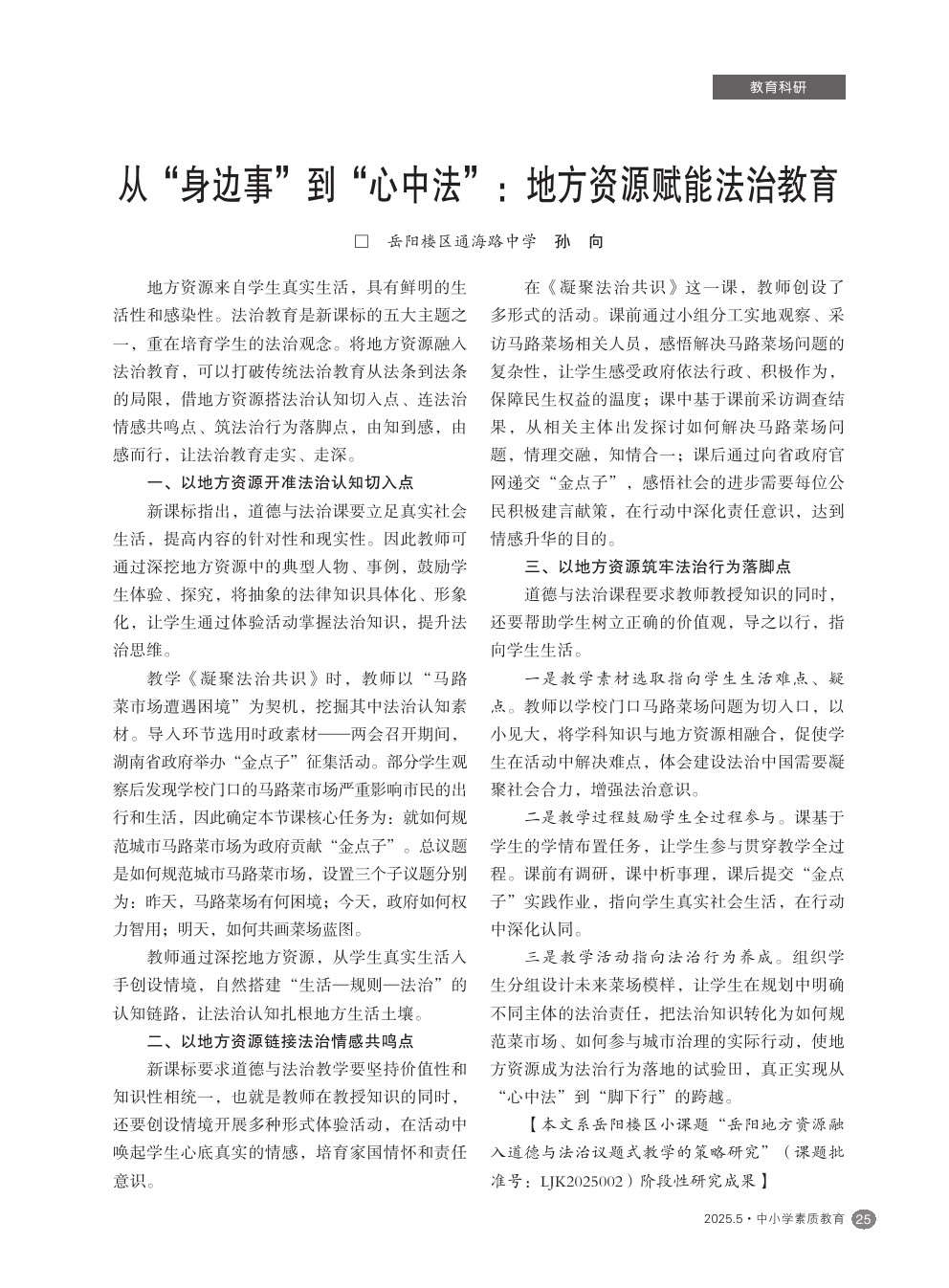 【2025年第5期】从“身边事”到“心中法”:地方资源赋能法治教育