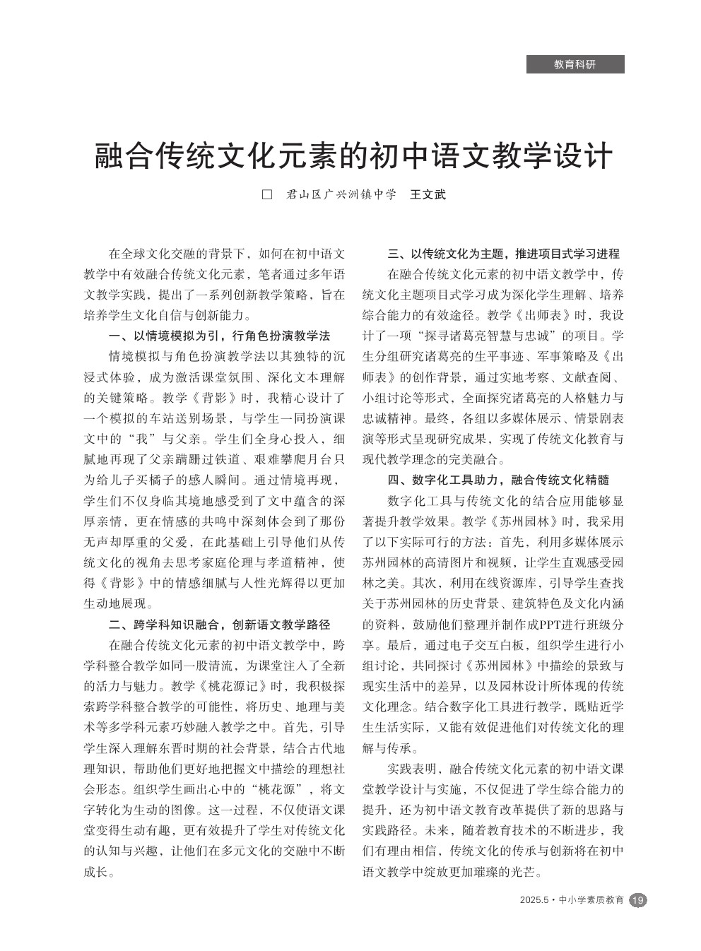 【2025年第5期】融合传统文化元素的初中语文教学设计