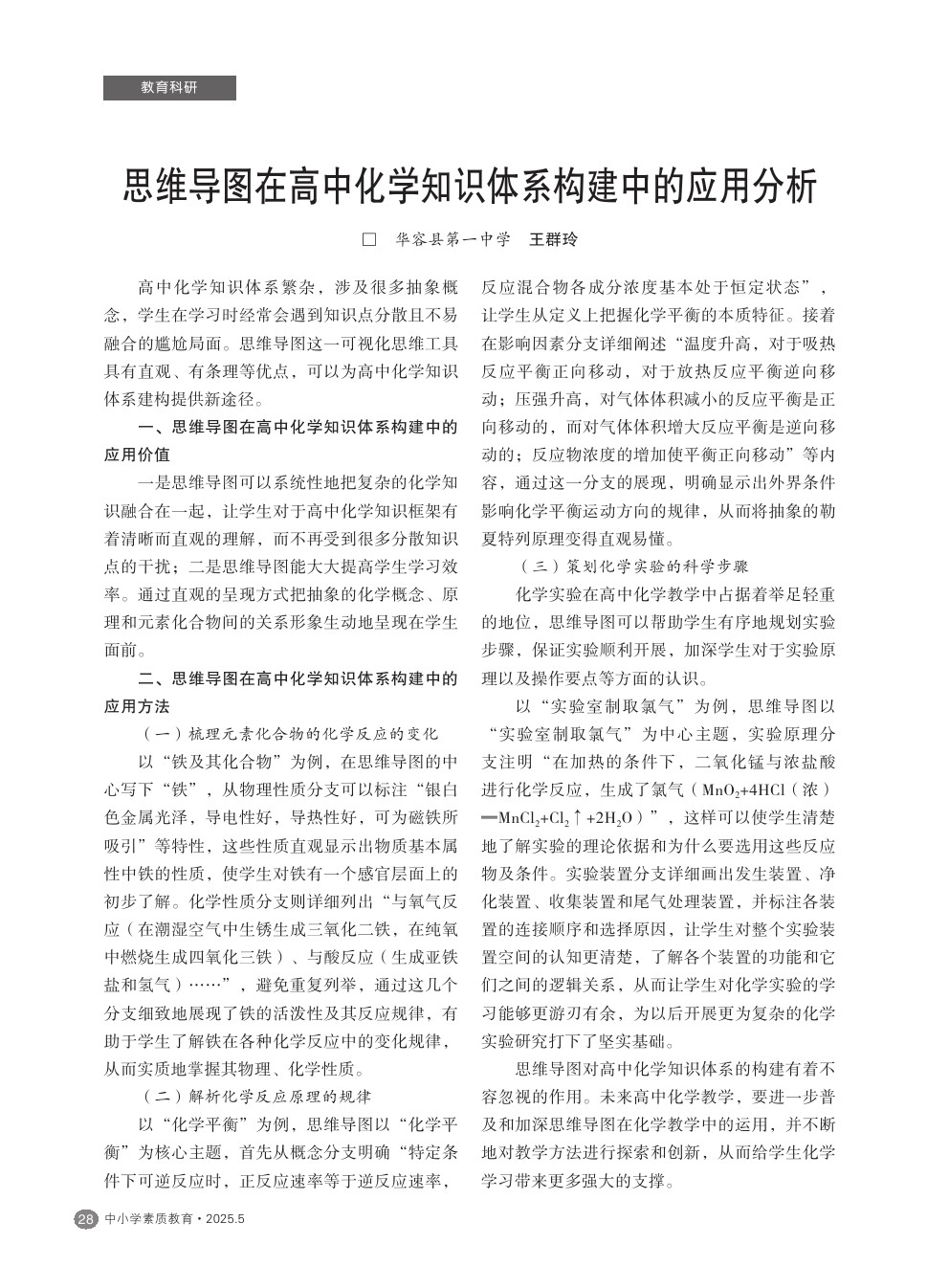 【2025年第5期】思维导图在高中化学知识体系构建中的应用分析