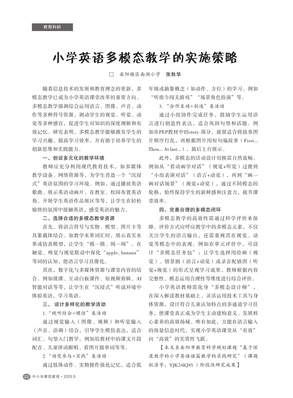 【2025年第5期】小学英语多模态教学的实施策略