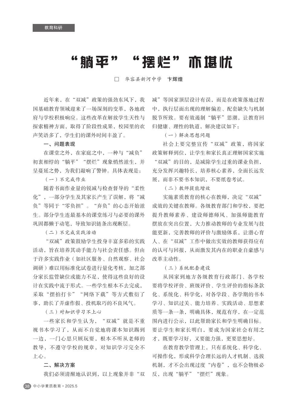 【2025年第5期】“躺平”“摆烂”亦堪忧