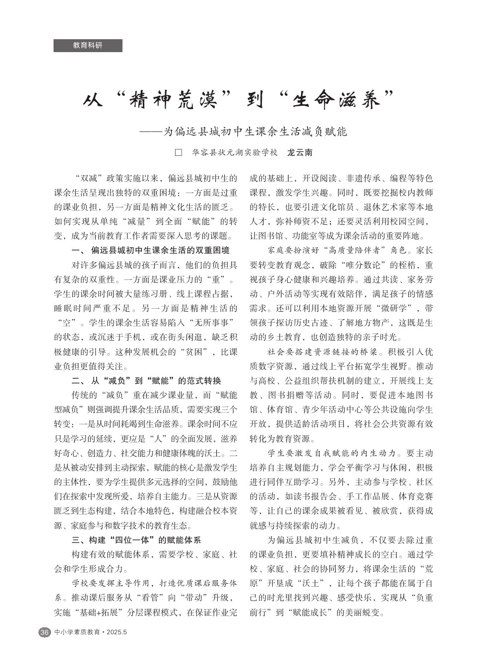 【2025年第5期】从“精神荒漠”到“生命滋养”——为偏远县城初中生课余生活减负赋能