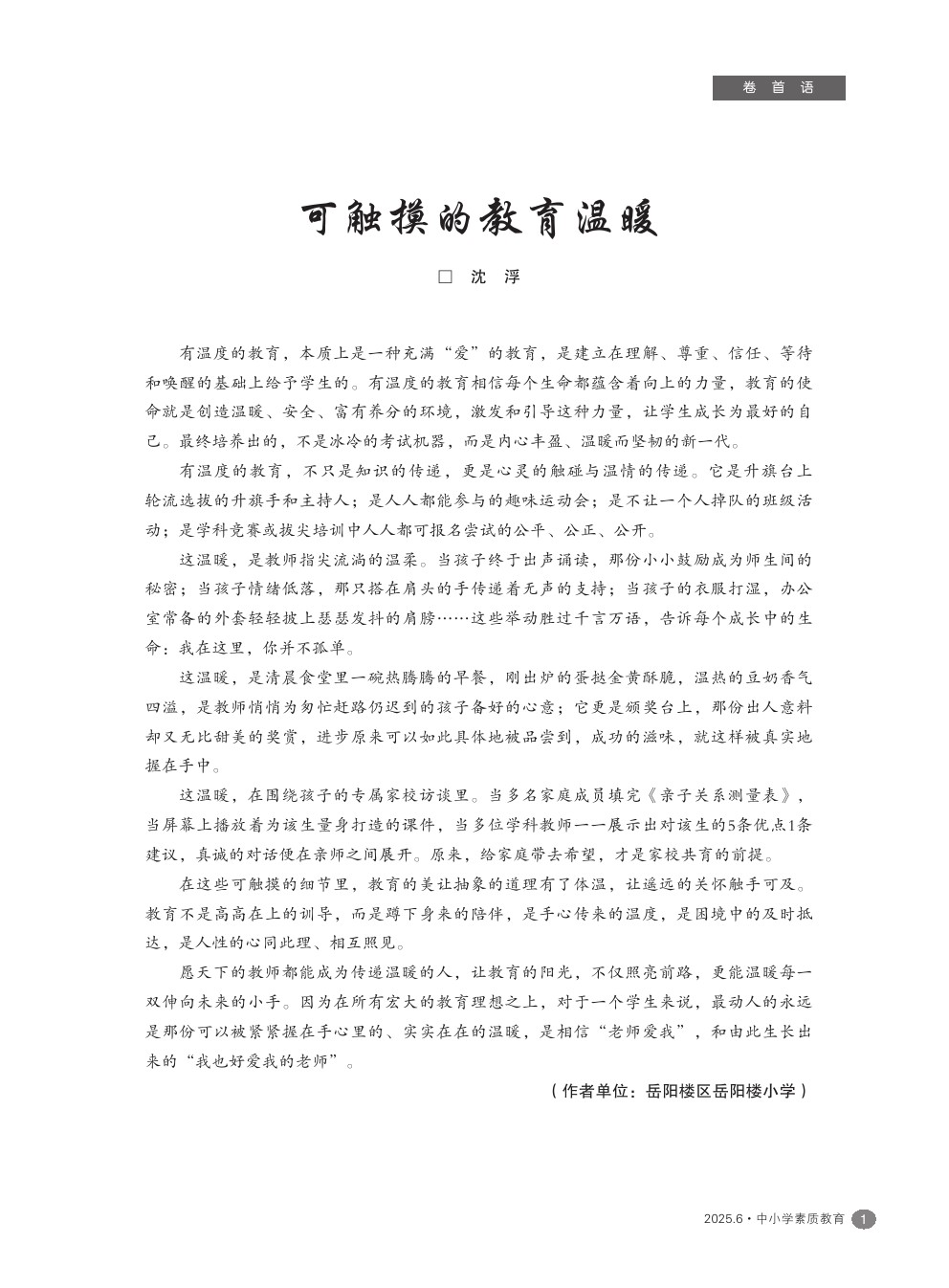 【2025年第6期】可触摸的教育温暖