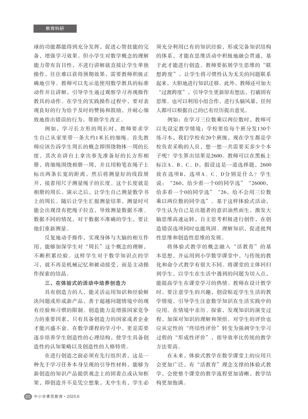 【2025年第6期】基于“活教育”理念的小学数学体验式教学