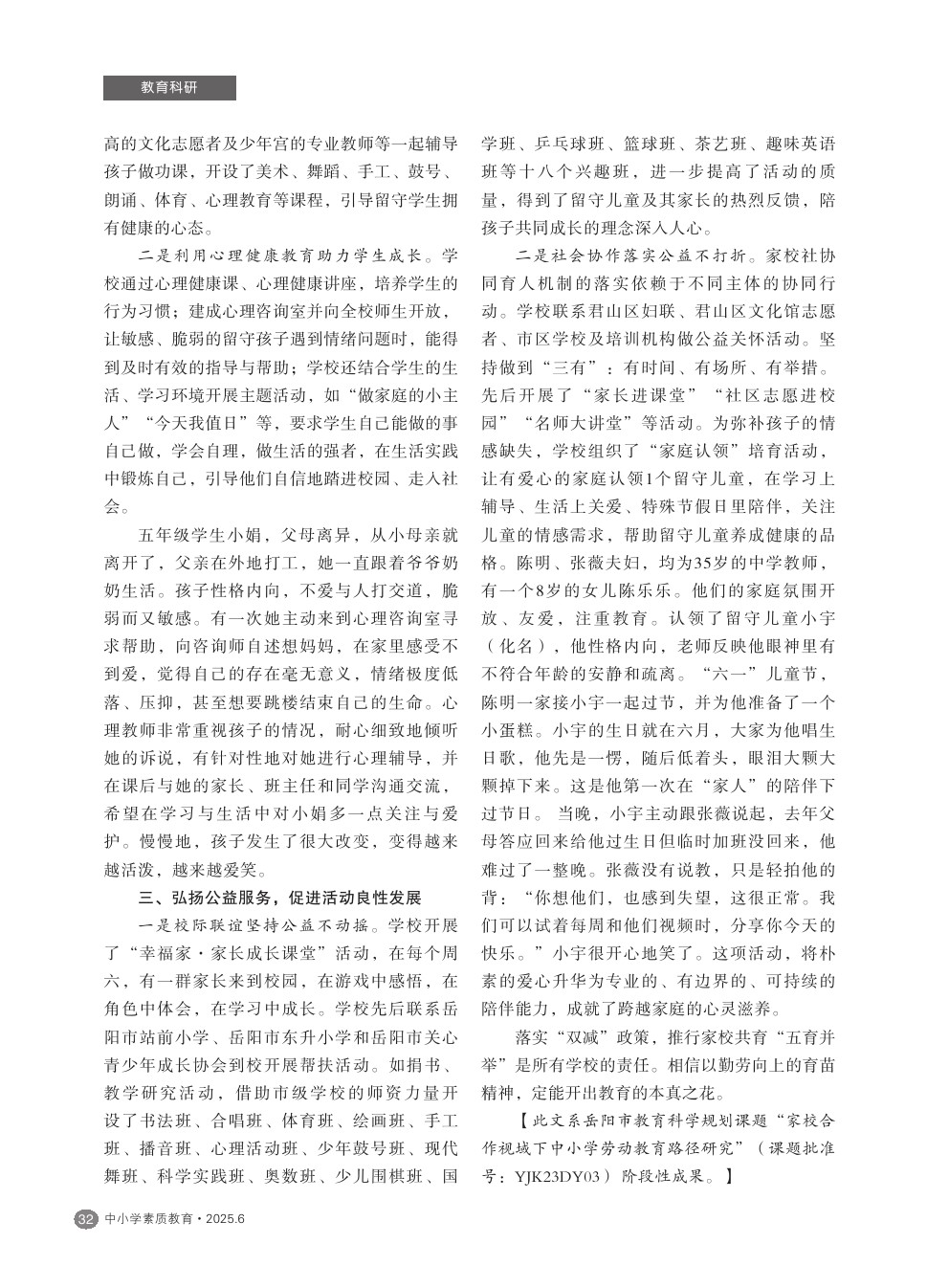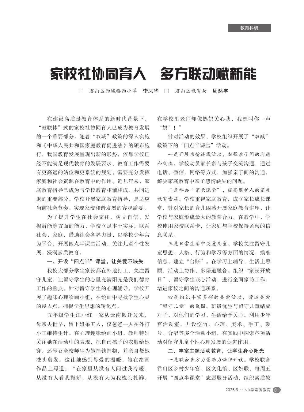 【2025年第6期】家校社协同育人 多方联动赋新能