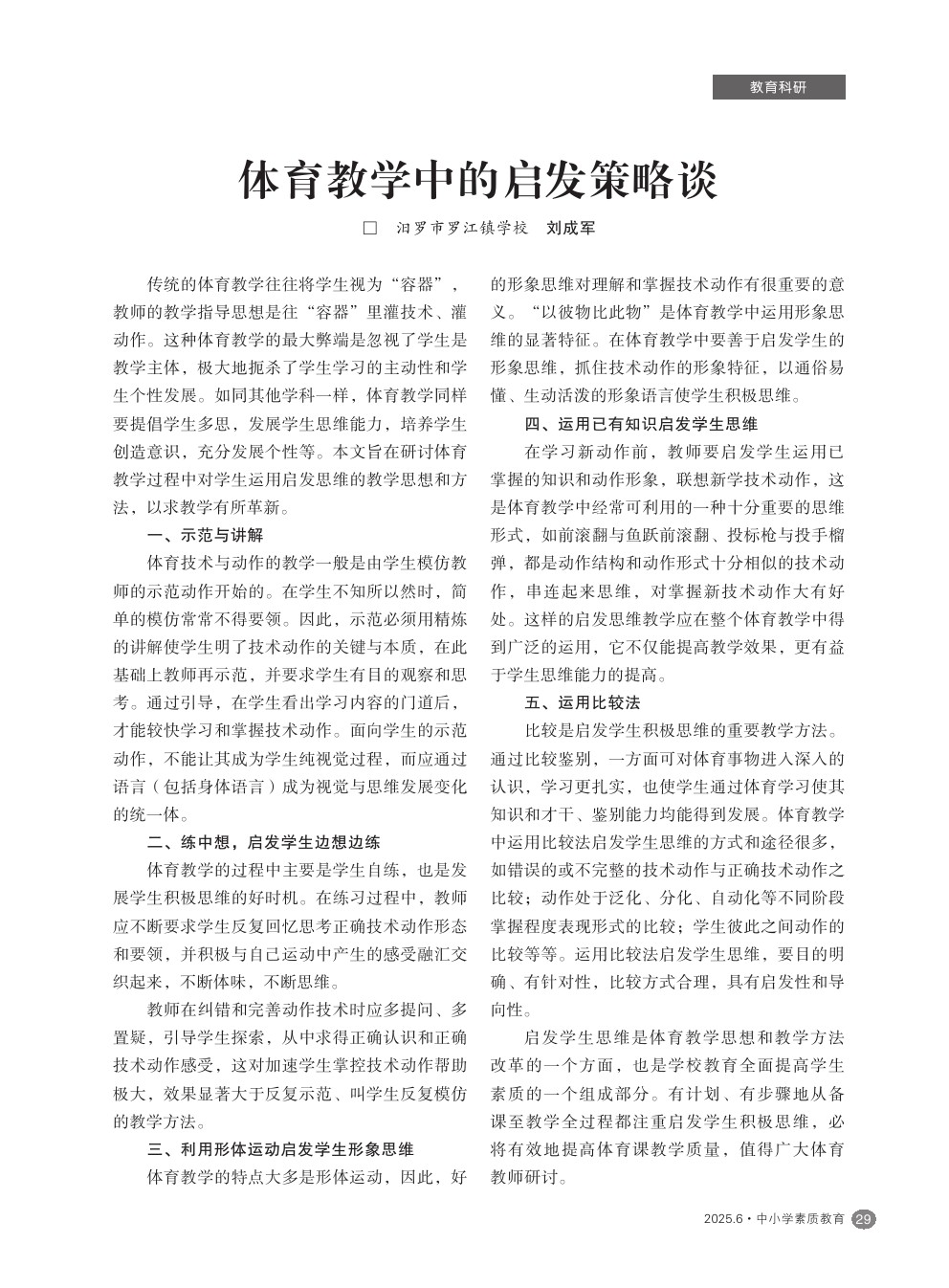 【2025年第6期】体育教学中的启发策略谈