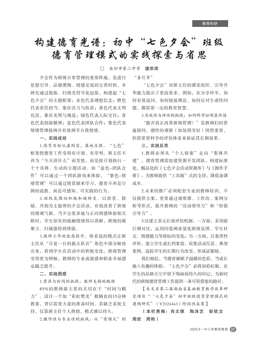 【2025年第6期】构建德育光谱:初中“七色夕会”班级德育管理模式的实践探索与省思