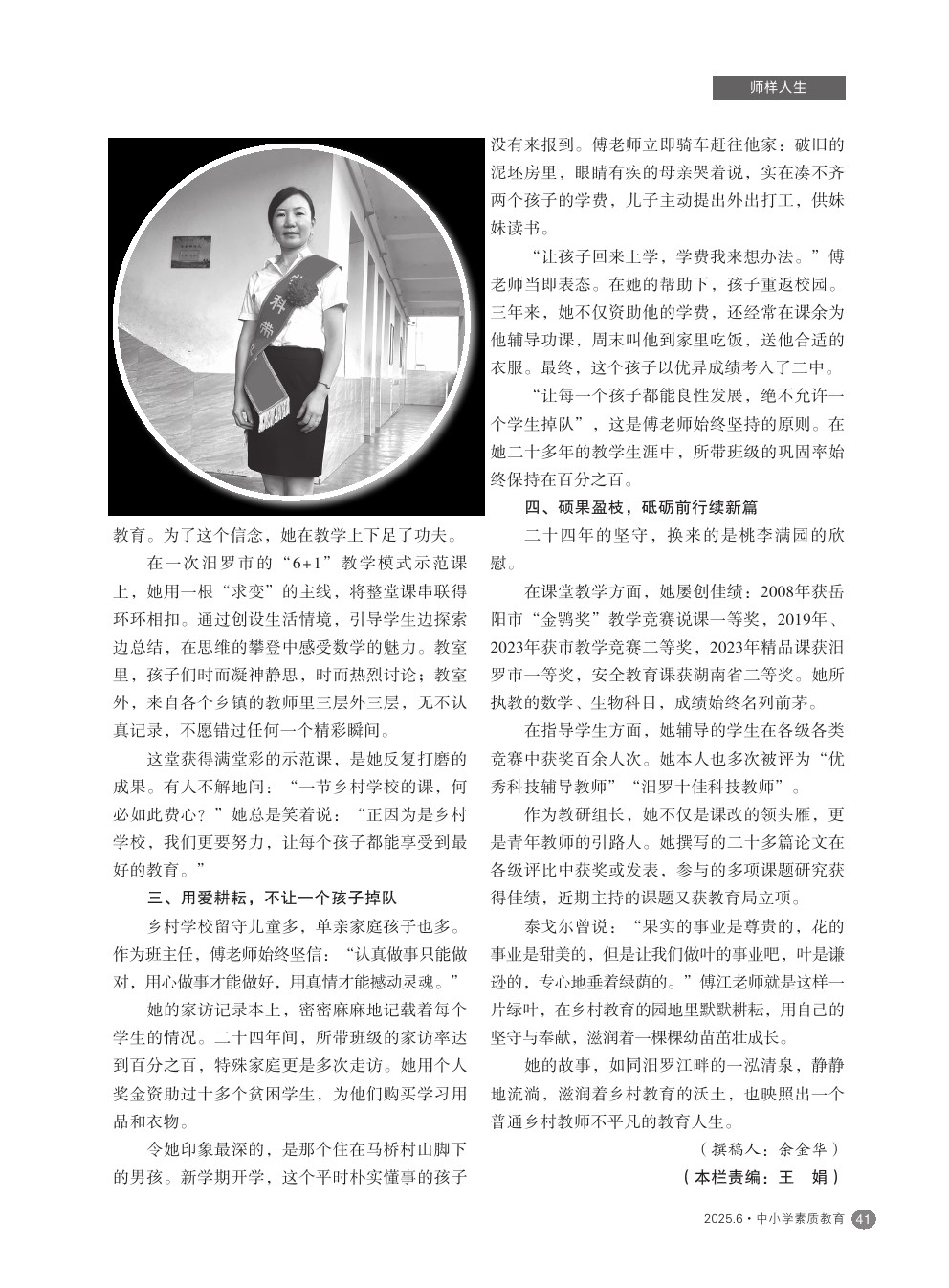 【2025年第6期】更有清流是乡村——记岳阳市“最美乡村教师”傅江