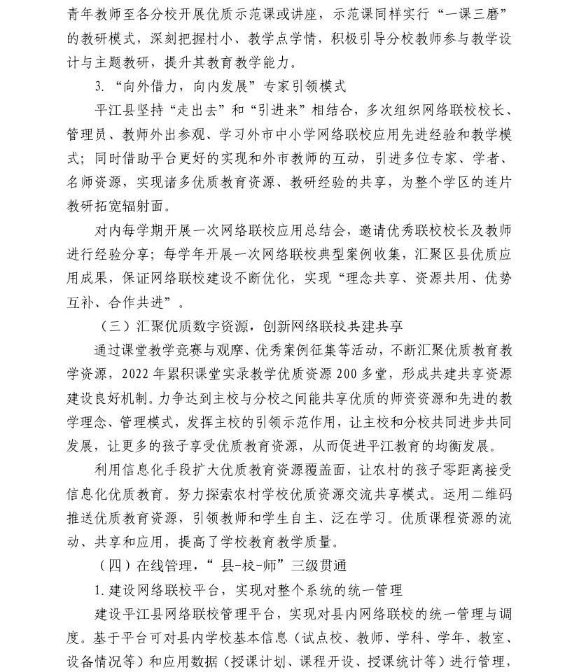 【2022年案例】创新网络联校应用,助力乡村教育振兴(平江县教育技术中心)