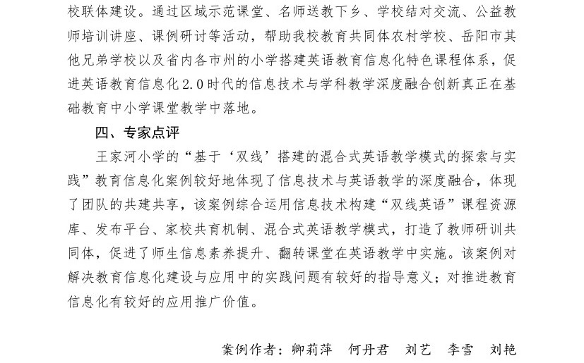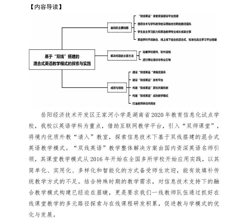 【2022年案例】基于“双线”搭建的混合式英语教学模式的探索与实践(岳阳经济开发区王家河小学)