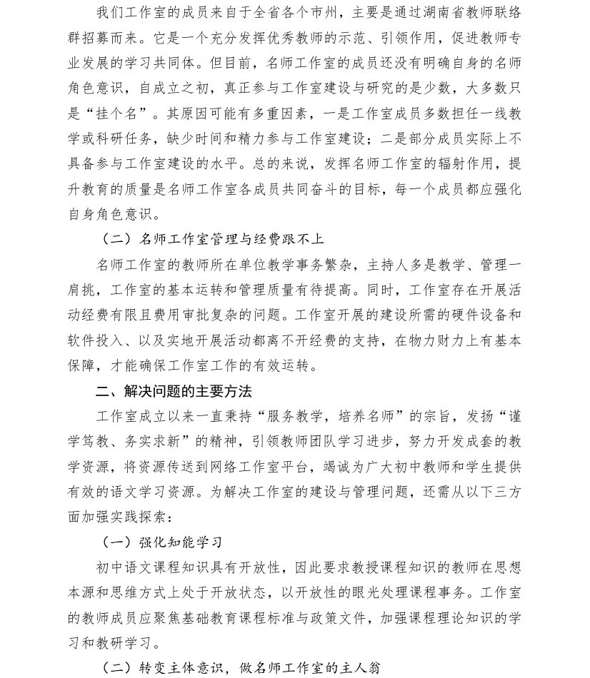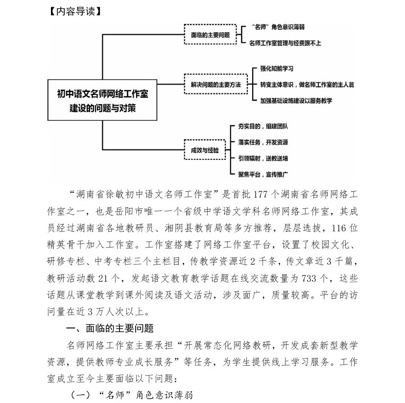 【2022年案例】初中语文名师网络工作室建设的问题与对策(湘阴县教育技术中心)